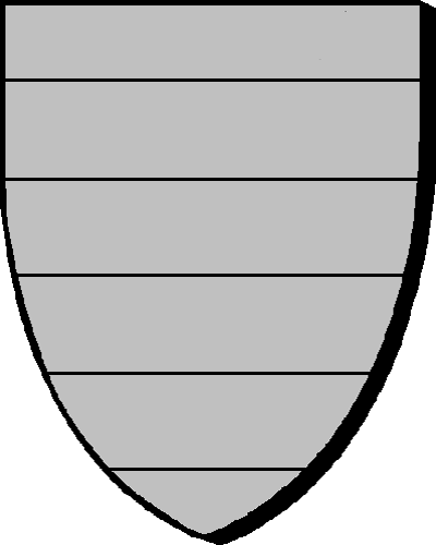 | "d'argent, à deux fasces de gueules, accompagnées de sept merlettes de sable, quatre en chef et trois en pointe" |
