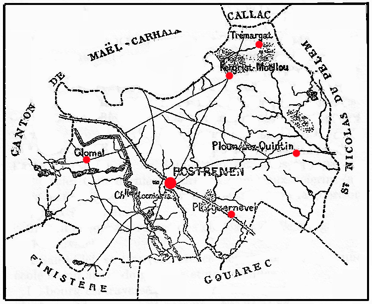 — Limit. : N. Maël-Carhaíx; E. Kergrist-Moëllou, Rostrenen, Plouguernevel,