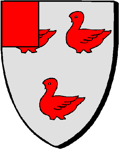 "d'argent à trois merlettes de gueules, au franc canton de même" "en arc'hant e deir voualc'henn en gwad, e c'hrenngonk ivez en gwad" - Guillaume, conseiller du duc Arthur III en 1309. (GLB)(PPC) |