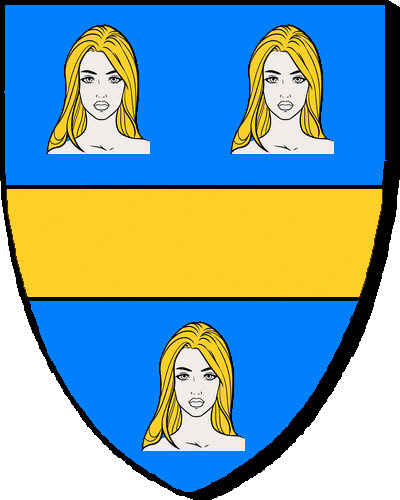 "D'azur à une croix alésée d'or, chargée d'un coeur de gueules et accompagnée de trois croissants d'argent, 2, 1, surmontés chacun d'une étoile d'or" "En glazur e groaz divouedet en aour, karget gant ur c'halon en gwad ouzh kondon hag heuliet gant teir c'hreskenn en arc'hant, 2, 1, leinet pep hini gant ur steredenn en aour" - Rolland, conseiller au Parlement de Bretagne en 1599. - Pierre, conseiller au Parlement de Bretagne en 1624. Fondu en 1655 dans la Bourdonnaye. |
