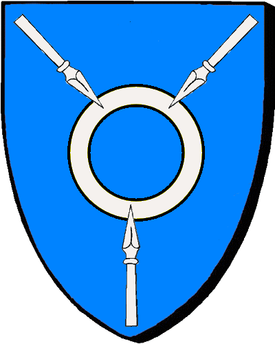 Famille Mabille : seigneurs des Granges, du Rochereau. "d'azur à trois écussons d'argent, chargés chacun de trois mouchetures de sable" / "En glazur, e dri skoedig en arc'hant, pep hini karget gant teir brizhenn erminig en sabel" |