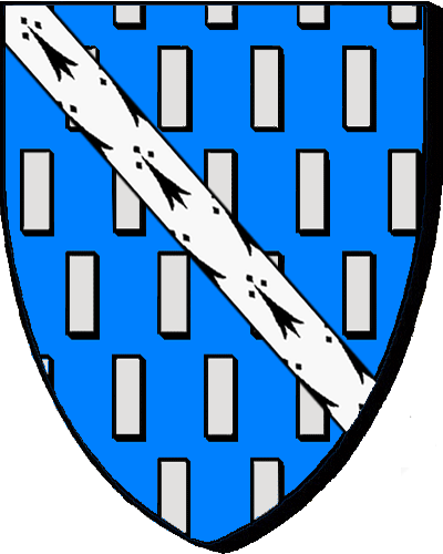 "de sable, au bar d'argent, l'écu semé de billettes de même" "e sabel, e braog en arc'hant, a skoed hadet gant kanochennoù ivez en arc'hant" |