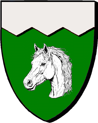 | Blason; armoiries / Ardamezioù; skoed : * Froger et Pressensé (2001) : "de sinople à une tête de cheval arrachée d'argent; au chef denché de trois pièces du même". devise : "Digompez ha dispar". Concepteur : R.Y Déniel. P.F. 24 août 1977" * JC Even : "geotet, e benn marc'h diframmet en arc'hant; e gab tridentek ivez en arc'hant" |