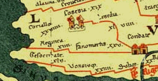 Fanomartis (Cordeul), entre Condate (Rennes), et Reginca (embouchure de la Rance) Table de Peutinger |