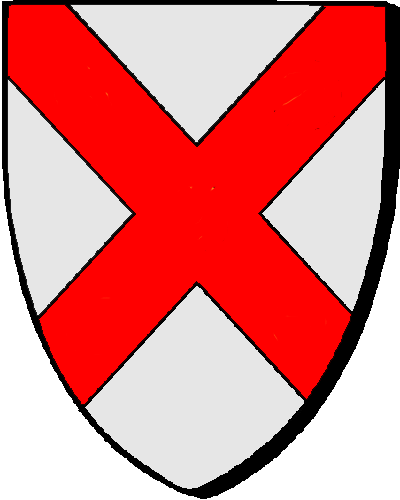 Références de 1427 à 1478, dites par. év. de Saint-Malo, Rennes, et Nantes. "d'argent au sautoir de gueules" / "en arc'hant e lammell en gwad" (PPC) |