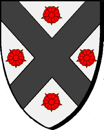 Famille d'Avignon / Davignon : seigneurs de la Pinçzonnière, en Chevré; de la Villechère, en Izé; du Fontenil, en Chantenay. "de gueules au sautoir, accompagné en chef d'un besant, en flancs et en pointe de trois coquilles, le tout d'argent" / "en gwad e lammell heuliet ouzh kab gant ur bezantenn, ouzh lezioù hag ouzh beg gant teir c'hregilhenn, an holl en arc'hant" François, secrétaire du duc en 1475; Pierre, receveur de Nantes en 1533; Artur, appelé à l'arrière-ban de Nantes en 1543. (PPC) |