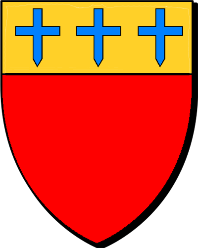 "D'azur à une croix alésée d'or, chargée d'un coeur de gueules et accompagnée de trois croissants d'argent, 2, 1, surmontés chacun d'une étoile d'or" "En glazur e groaz divouedet en aour, karget gant ur c'halon en gwad ouzh kondon hag heuliet gant teir c'hreskenn en arc'hant, 2, 1, leinet pep hini gant ur steredenn en aour" - Rolland, conseiller au Parlement de Bretagne en 1599. - Pierre, conseiller au Parlement de Bretagne en 1624. Fondu en 1655 dans la Bourdonnaye. |