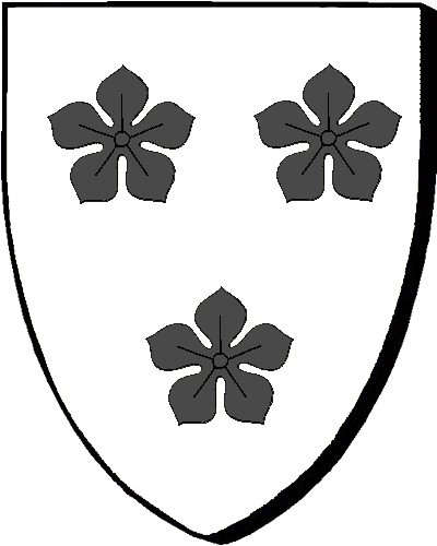 Famille Mabille : seigneurs des Granges, du Rochereau. "d'azur à trois écussons d'argent, chargés chacun de trois mouchetures de sable" / "En glazur, e dri skoedig en arc'hant, pep hini karget gant teir brizhenn erminig en sabel" |