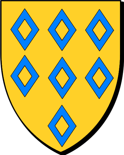 "d'azur à trois bezants d'or" / "en glazur e deir bezantenn en aour". Armorial 1696. - François, conseiller au Parlement de Bretagne en 1569; - François, (le même ?) conseiller au Parlement de Bretagne en 1576; - Geffroi, conseiller au Parlement de Bretagne en 1578; .(PPC) |
